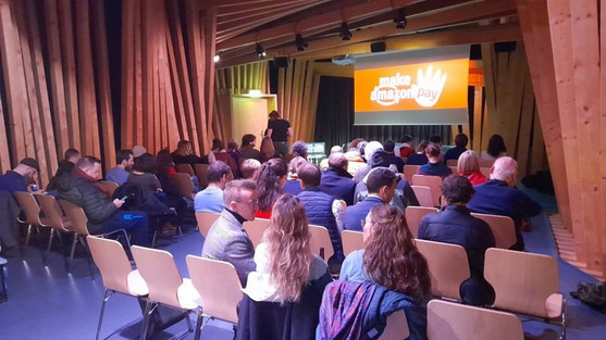 On the 17.01.2024, and to mark Amazon's 20th anniversary in Luxembourg, the Make Amazon Pay platform organized the screening of the documentary The Great Amazon Heist and a debate with members of the platform about the impact of Amazon on working conditions, taxation and the environment.